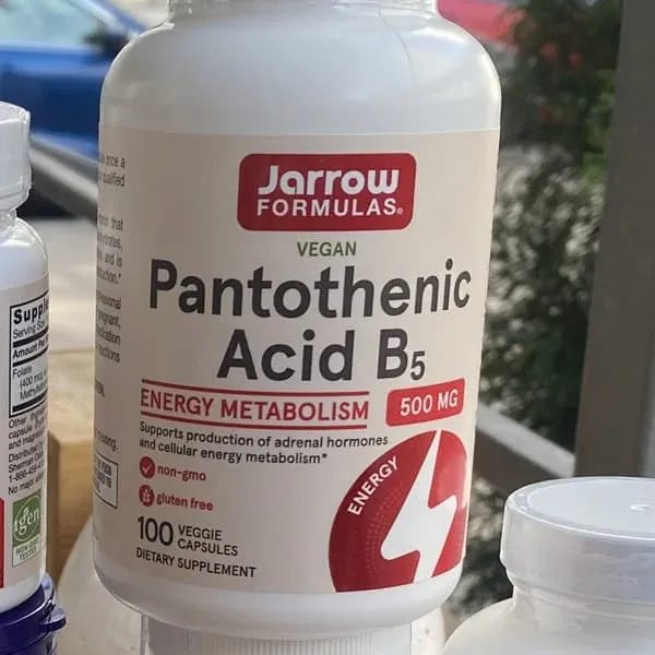 This supplement provides 500 mg of vitamin B5 (calcium pantothenate) per serving, a dose significantly higher than the RDA, aimed at supporting energy metabolism, neurological function, and antioxidant defenses. Calcium is included in a minor supporting role. The formulation aligns with evidence for high-dose B5 in metabolic and nerve health, though pantethine may offer superior therapeutic activity.