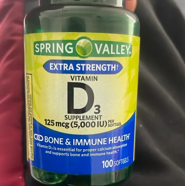 This supplement combines vitamin D3 (125 mcg) and vitamin K2 (50 mcg) to support bone and cardiovascular health through synergistic action. Vitamin D3 enhances calcium absorption, while K2 directs calcium to bones and away from arteries via activation of osteocalcin and matrix Gla protein. The dose of D3 is significantly higher than typical daily recommendations, indicating a therapeutic intent for deficiency correction or maintenance in high-risk individuals.