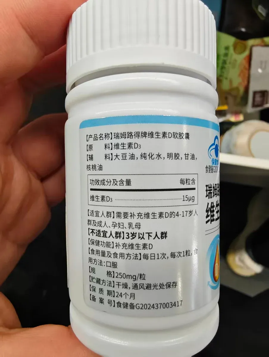 完全透明:明确列出维生素D3含量为15μg,无 proprietary blend,成分清晰可追溯。