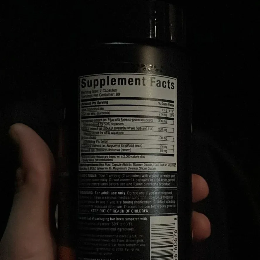 The formula combines several herbal extracts and trace minerals aimed at supporting male hormonal health and vitality. Primary ingredients include fenugreek, tribulus, and longjack, while zinc, boron, and Brassica oleracea serve as supporting micronutrients and phytonutrient sources.