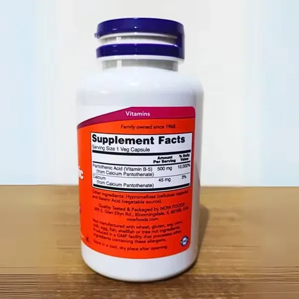 Pantothenic Acid 500 mg by NOW is a targeted dietary supplement providing a high dose of vitamin B5, a critical nutrient involved in numerous metabolic pathways. Pantothenic acid is best known for its role in synthesizing coenzyme A (CoA), which is indispensable for energy production, fatty acid metabolism, and the biosynthesis of steroid hormones, neurotransmitters, and hemoglobin. While deficiency is extremely rare due to its widespread presence in foods, supplementation has been explored for specific health applications, particularly in dermatology.