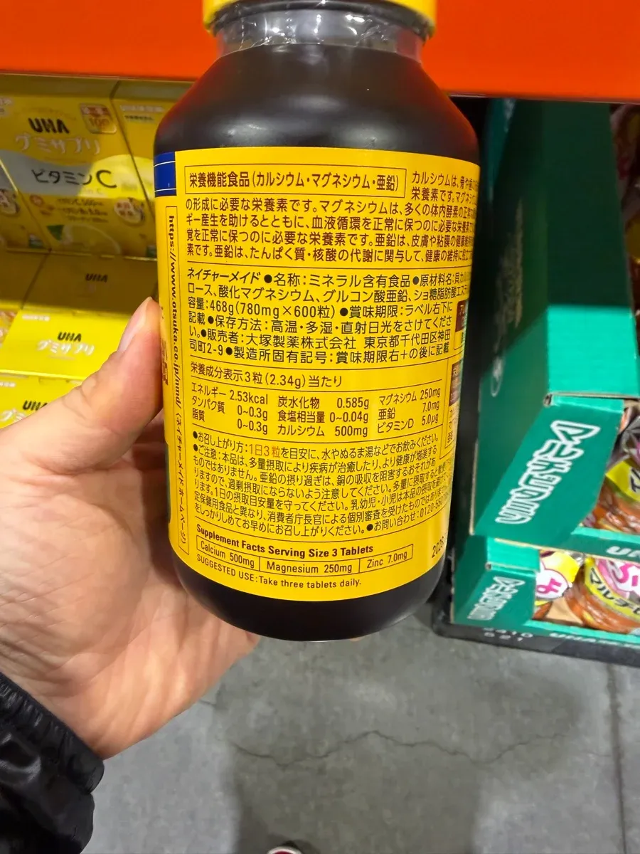 The primary ingredients in Nature Made's Calcium & Magnesium with Zinc are calcium (500 mg) and magnesium (250 mg), both essential minerals with well-established roles in bone metabolism, muscle function, and cardiovascular regulation. Calcium is critical for maintaining bone mineral density, though high-quality evidence suggests supplementation does not significantly reduce fracture risk in community-dwelling adults [1]. Importantly, calcium supplements exceeding 500 mg/day have been associated with an increased risk of myocardial infarction and cardiovascular events, particularly when not co-administered with vitamin D [2][3].